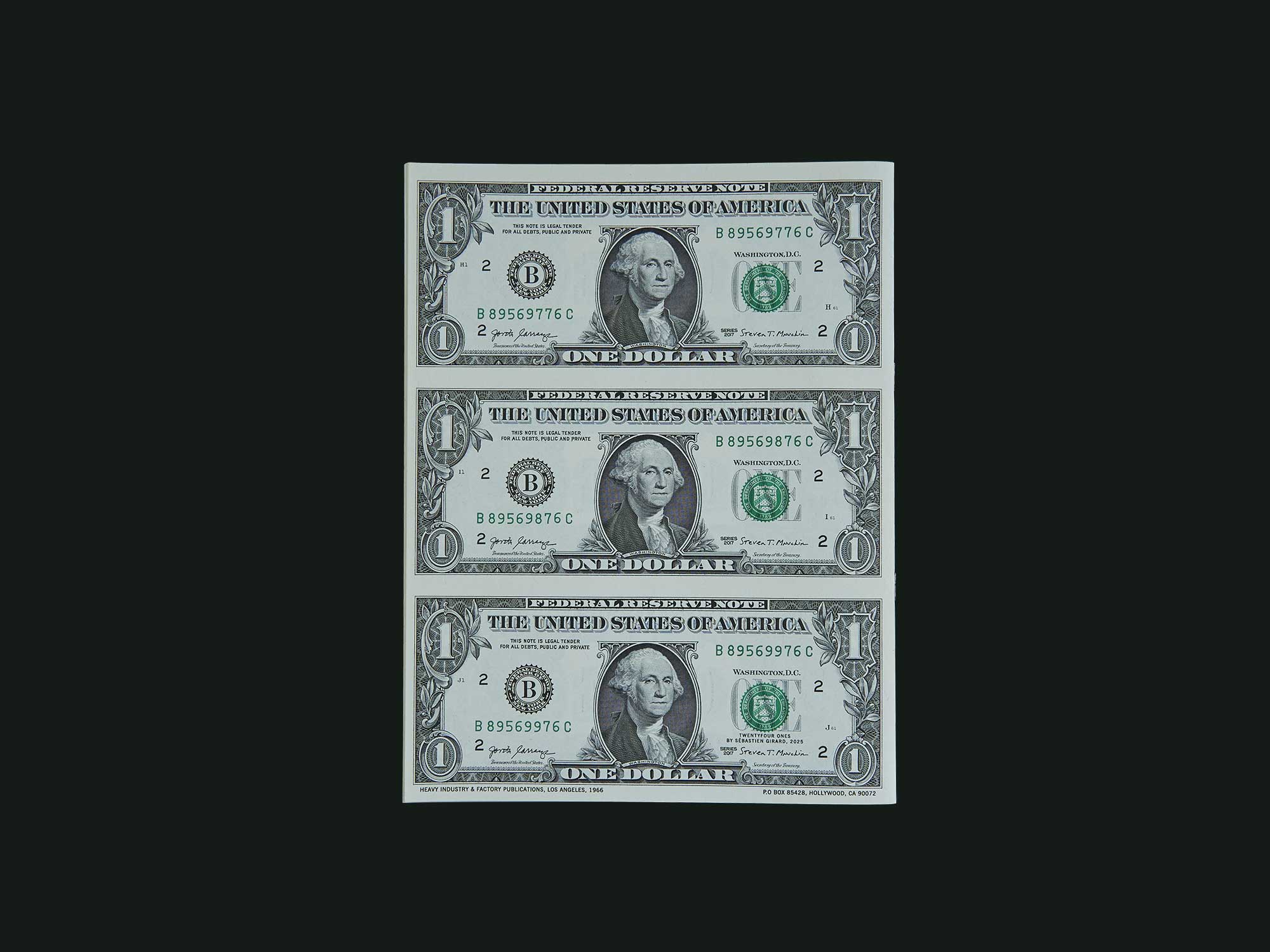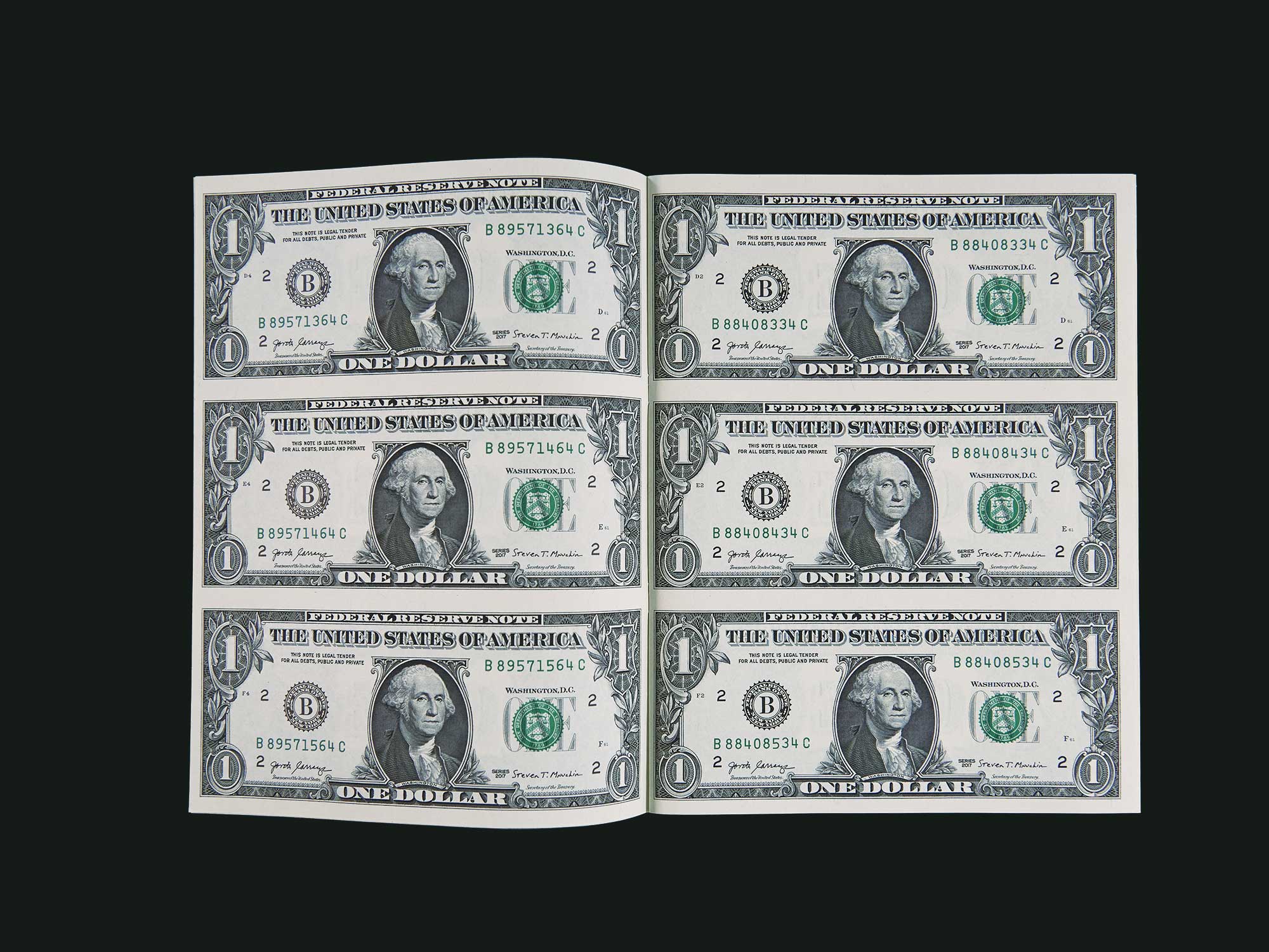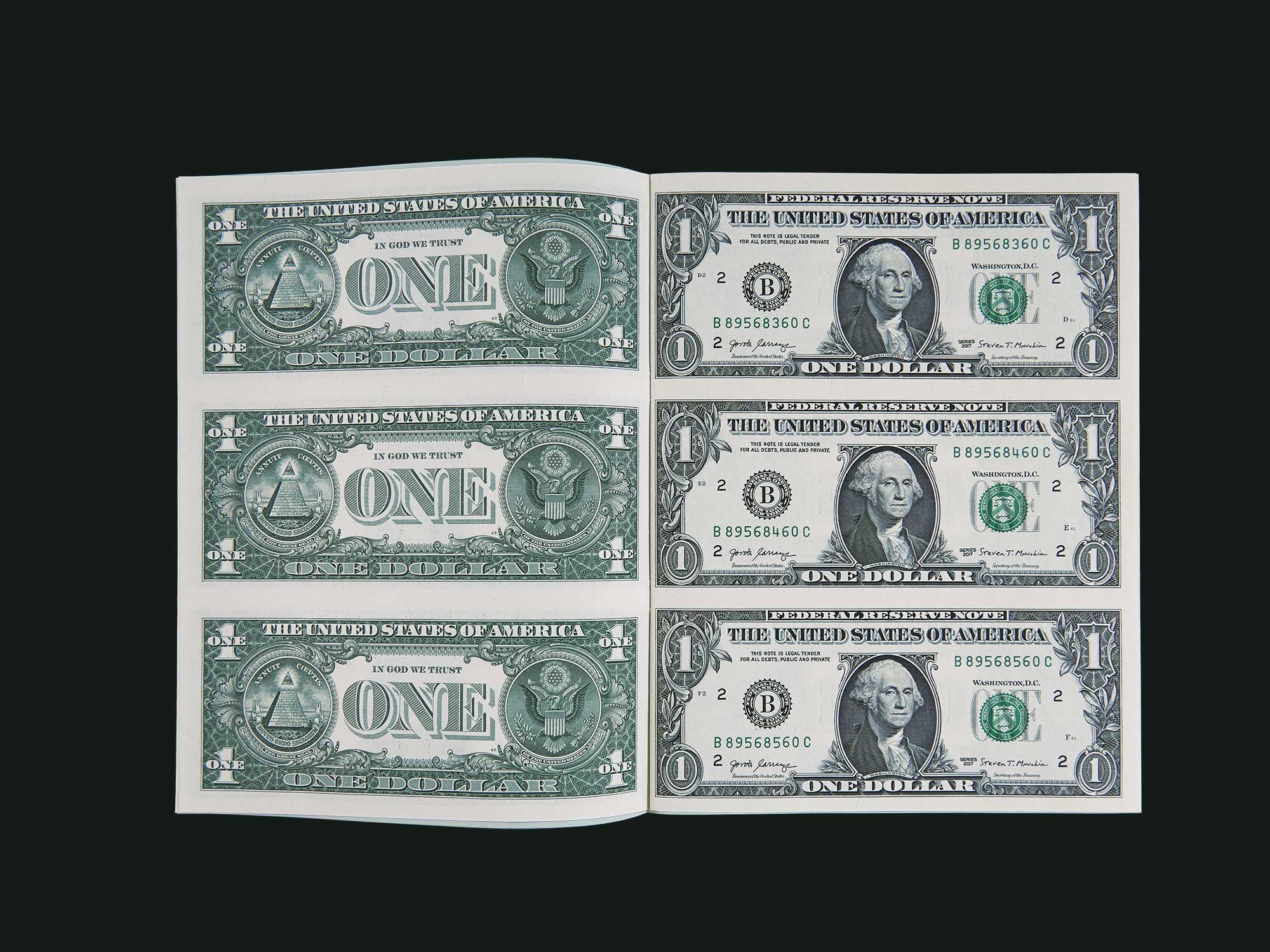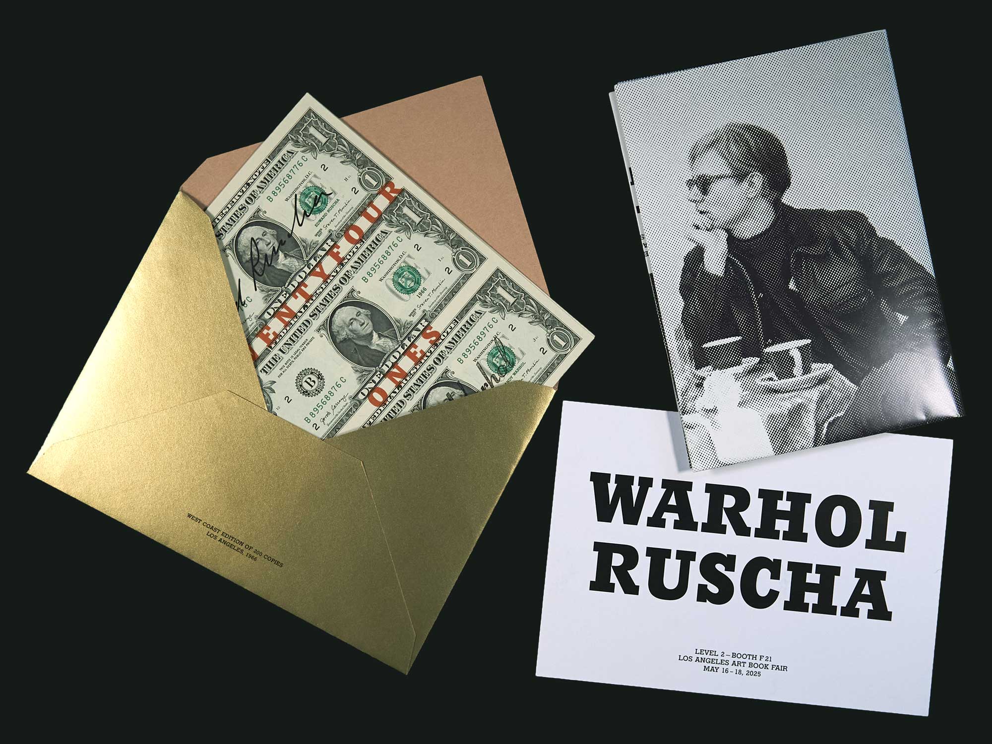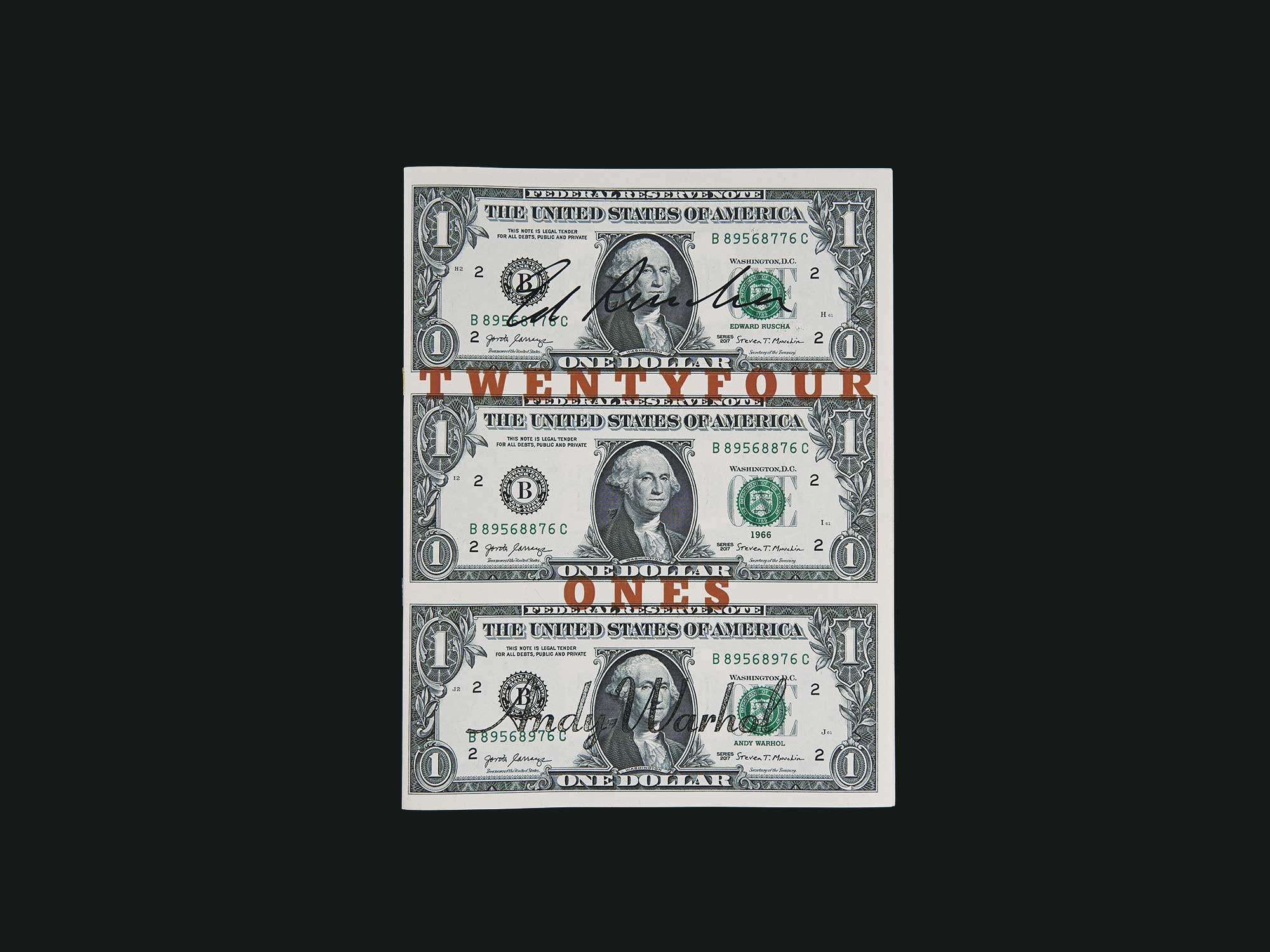 Twenty Four Ones imagines this lost project — a fusion of Ruscha’s conceptual clarity and Warhol’s obsession with money and mass production. The book is composed of 24 uncut U.S. dollar bills from the Treasury, housed in a golden envelope.